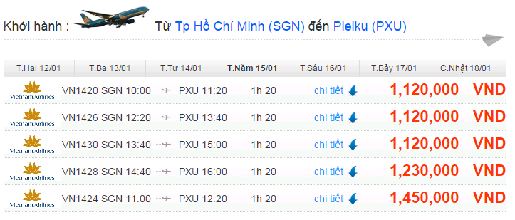 Đây là bảng giá vé phổ biến HCM đi Pleiku, bạn có thể tham khảo, giá vé có thể thay đổi theo từng thời điểm khác nhau. Vui lòng liên hệ để có thông tin chính xác nhất.